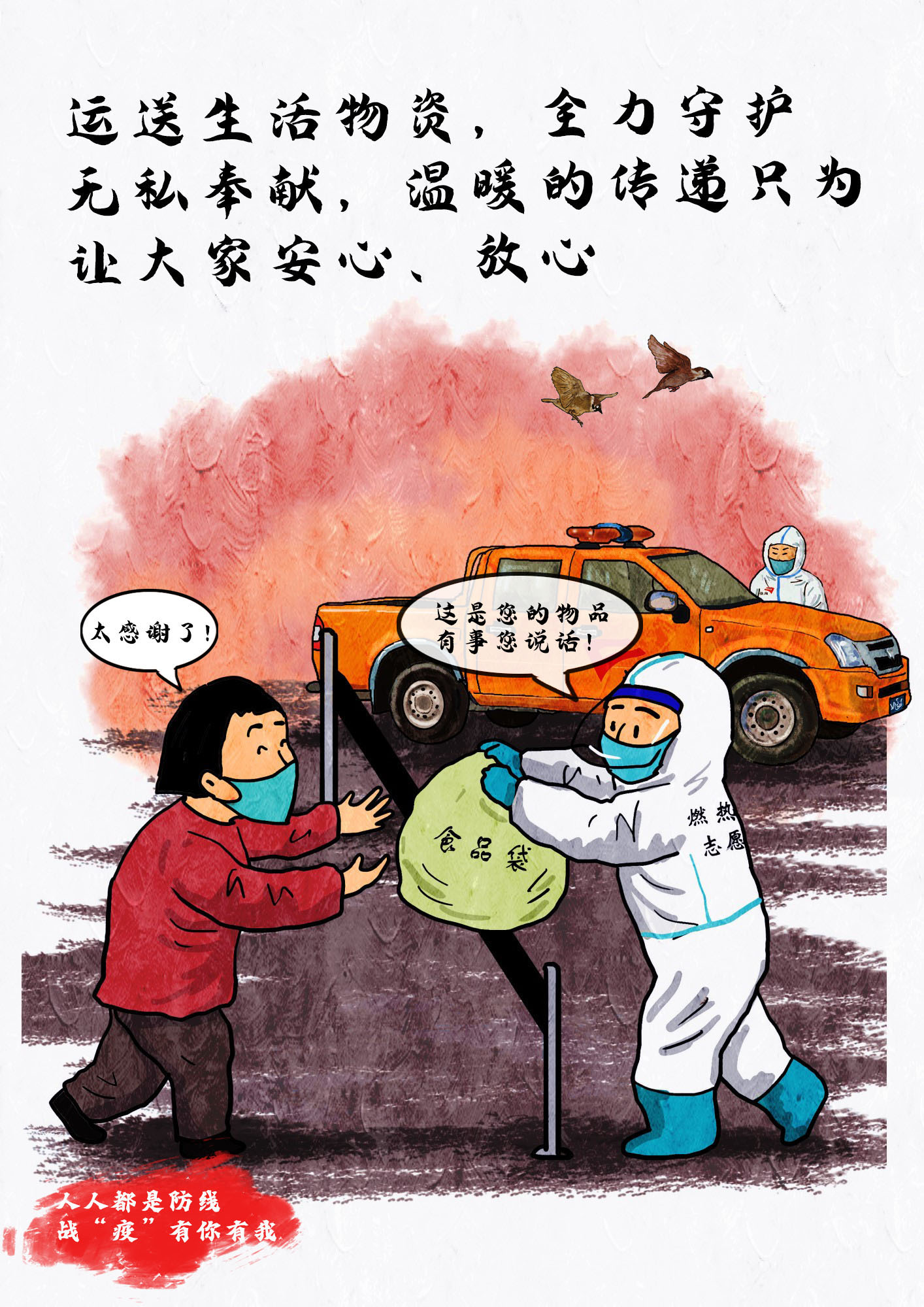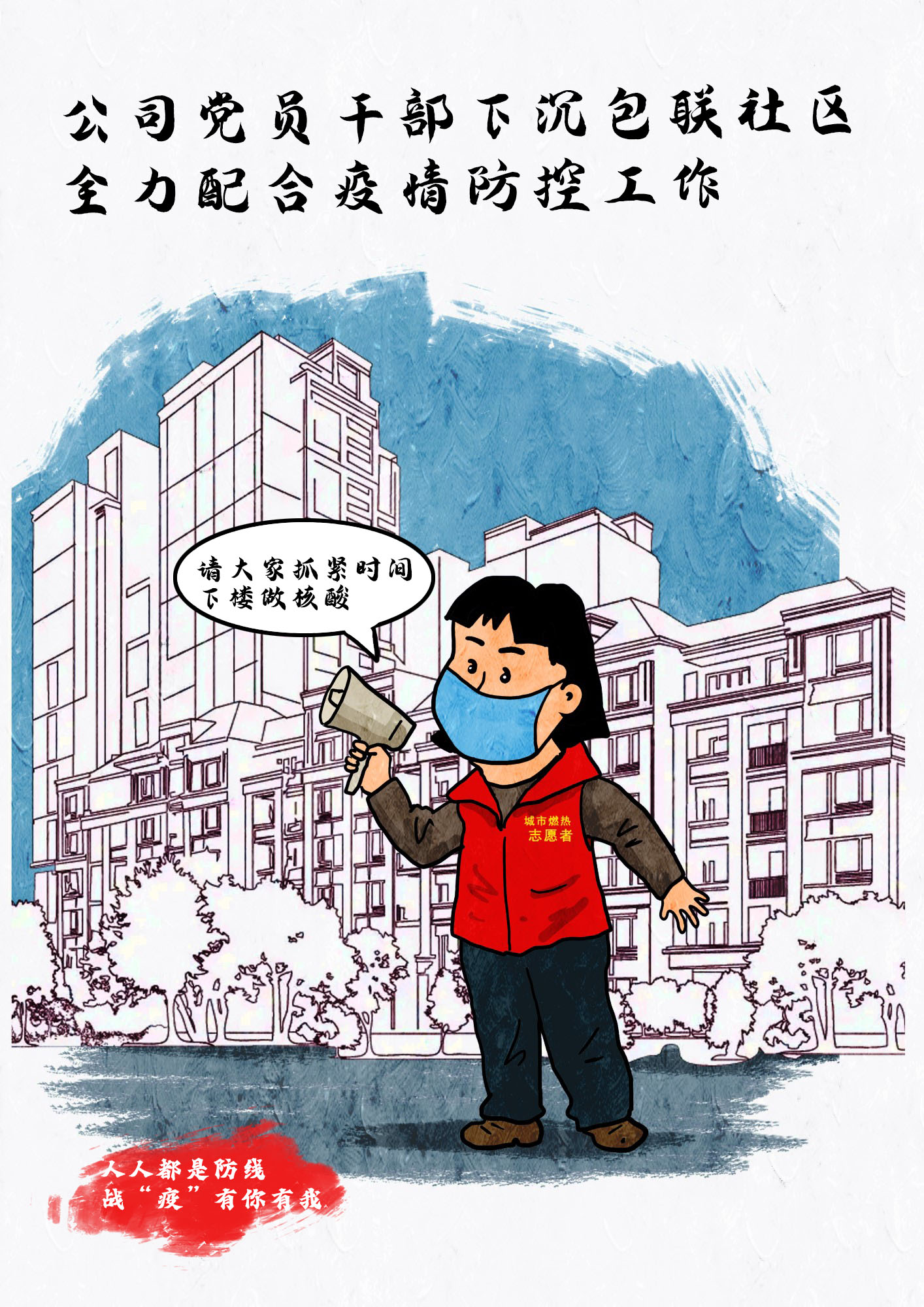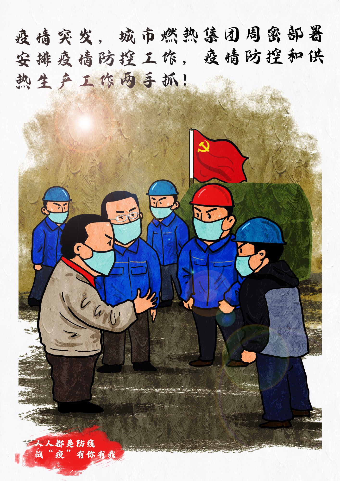 今天,城市燃熱集團職工高帆手繪了一組組集團抗疫保供的漫畫鏡頭,記錄溫暖感人的瞬間。
