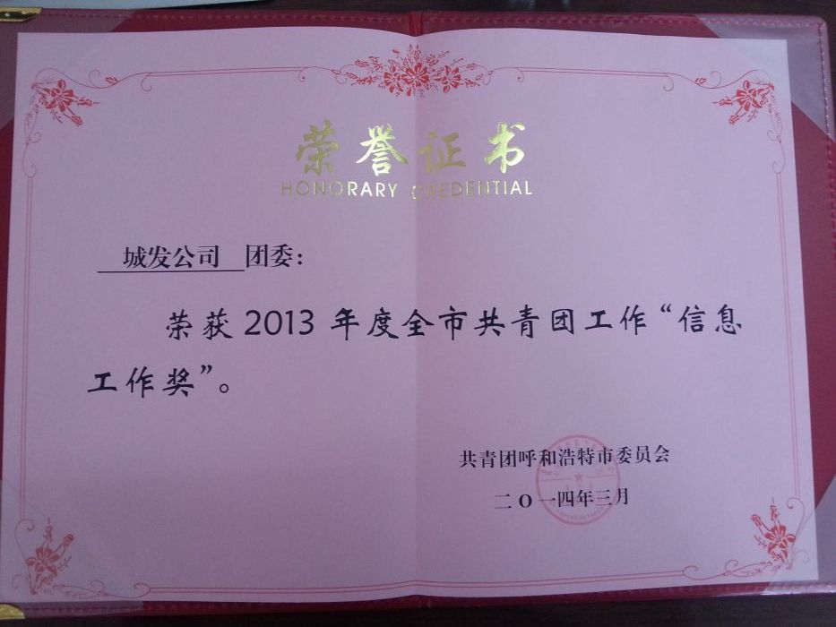 城發(fā)公司團委獲得2013年度全市共青團工作“信息工作獎”
