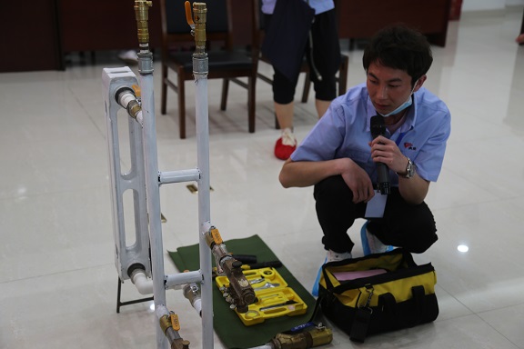 橋靠分公司經(jīng)理阮強(qiáng)告訴筆者,他們就是供熱一線員工,面對(duì)的就是用戶,遇到過各種各樣的用戶訴求。為供好熱、服好務(wù),所以平時(shí)對(duì)職工要求非常嚴(yán)格,橋靠分公司的參賽人員看到他們,緊張到在入場時(shí)就把服務(wù)工具都掉地上了。