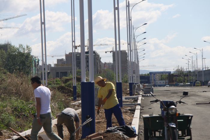 哈拉更西路路燈安裝現(xiàn)場(chǎng)。張亞利攝