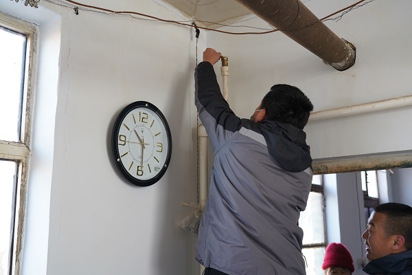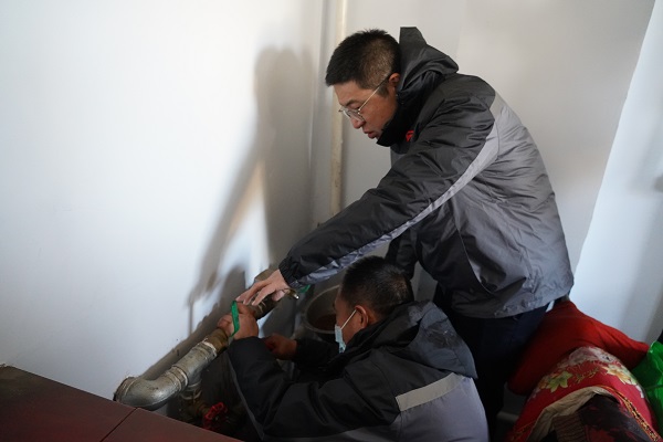 在回訪村中二站南線的路上,一位年近九十的大娘著急地朝我們走來。她說:"到我家看看吧,暖氣不熱。"工作人員跟隨老人來到其家中。大娘家為小南房,大約20平米左右,四面漏風,她的老伴身著棉衣盤腿坐在炕上。工作人員開始進行排氣、調(diào)節(jié)閥門、檢查過濾器,最后排查發(fā)現(xiàn)管道內(nèi)有異物堵塞,經(jīng)過排污,大娘家中的暖氣逐漸升溫。大爺激動地說:"你們給我修暖氣,忙的連口水也沒喝,娃娃們真好!我家院里有李子樹,明年李子熟了,你們過來吃。"客服處處長云躍看著大爺家簡陋的窗戶,略有所思.....稍后他說:"我們過幾天給大爺家安裝棉窗簾和門簾,讓溫暖到位、服務(wù)到位,室溫達標,讓老兩口溫暖過冬。"