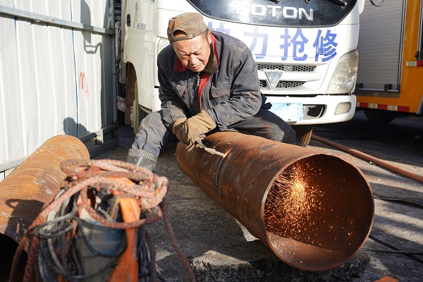 中午11點筆者離開現(xiàn)場時,開始焊接新管。截止下午2點發(fā)稿時,電廠已開始注水,停暖的用戶家中暖氣也在逐漸升溫。