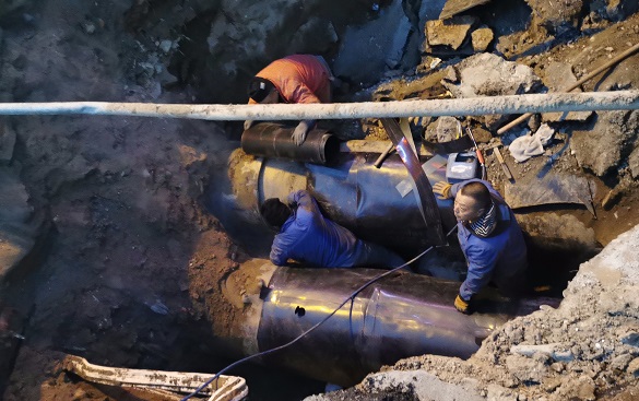 此次搶修采用DN800管道做"袖套"進(jìn)行管道焊接修復(fù),為整個(gè)搶修爭(zhēng)取了近1天的時(shí)間,最大程度保障了轄區(qū)熱用戶的供暖,為百姓的冬天筑起了一道最有力、最堅(jiān)固的溫暖防線。