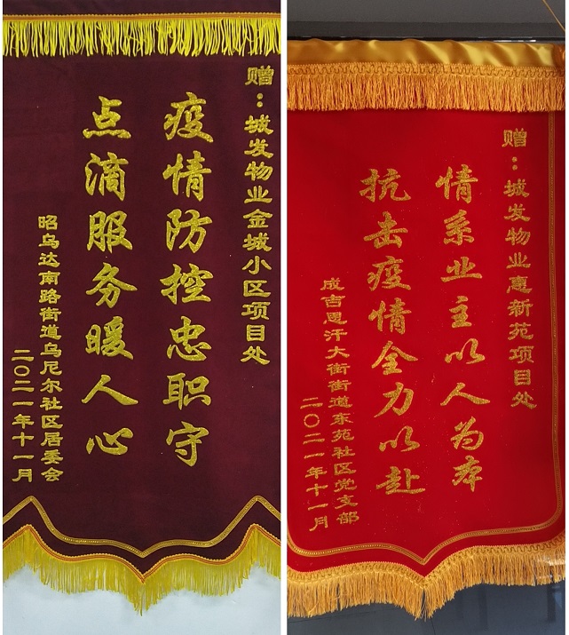 2021年城發(fā)物業(yè)公司年度取得了可喜成績,2021年被呼和浩特市物業(yè)管理協(xié)會評為2021年度先進(jìn)單位、管理的金城小區(qū)項(xiàng)目被呼和浩特市物業(yè)管理協(xié)會評為2021年度呼和浩特市物業(yè)管理示范項(xiàng)目,史濤、郝曉東、范宇昆、董美麗四名同志被呼和浩特市物業(yè)管理協(xié)會評為2021年"抗議勇士"與"最美物業(yè)人","金城小區(qū)"、"陽光美居"、"惠新苑"項(xiàng)目處分別被賽罕區(qū)烏尼爾社區(qū)居委會、富力社區(qū)、新城區(qū)東苑社區(qū)居委會贈送"疫情防控忠值守,點(diǎn)滴服務(wù)暖人心"錦旗和榮譽(yù)證書。