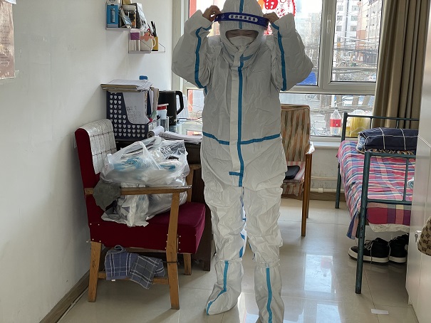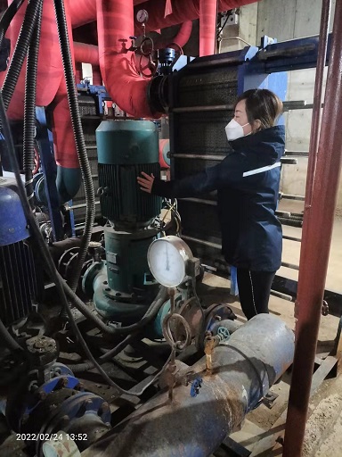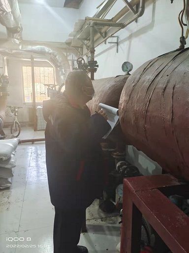 新華東分公司巨華朗域熱力站是受小區(qū)封控管理影響的第一個熱力站,公司臨時組建的運(yùn)營小組的李文霞從17日小區(qū)封控以來,一直在熱力站值守。2月24日,筆者來到長樂宮供暖所,看到所長李瑋潔正在和李文霞視頻通話:"每天的消殺要做好,你自己和你愛人的防護(hù)工作也要做好,站里運(yùn)行一切正常吧?你還需要什么物資嗎?"李瑋潔關(guān)切的詢問、耐心的叮囑著。李文霞說:"站內(nèi)運(yùn)行一切正常,我每天都按照要求對站內(nèi)進(jìn)行消殺,我和我愛人也很注意防護(hù)工作,分公司委托疫情防控人員給我們送進(jìn)來的物資還有很多,請領(lǐng)導(dǎo)放心,我會一直堅(jiān)守在工作崗位上。" 筆者又看到一旁有位工作人員在穿防護(hù)服,李瑋潔告訴筆者:"武警小區(qū)熱力站也在封控區(qū)域,我們和疫情防控相關(guān)人員溝通后,每天由站員穿著防護(hù)服,戴著口罩、醫(yī)用手套、防護(hù)面罩進(jìn)行4次巡檢,現(xiàn)在正在穿隔離服準(zhǔn)備去巡檢的是索媛媛。"二十多分鐘后,索媛媛回來,筆者看到她的隔離面罩上全都是霧氣,只見她熟練地將隔離服脫掉扔到指定的垃圾箱內(nèi),隨即開始做常規(guī)的消殺。她告訴筆者:"以前看到防疫一線的醫(yī)務(wù)人員穿著防護(hù)服工作只是覺得他們很辛苦,但是自從我也需要穿防護(hù)服巡站時,才有了親身的體驗(yàn),不僅防護(hù)服穿脫時不方便,而且著裝后行動也變得不靈敏,我每次只穿半個小時左右就覺得很不舒服了,而醫(yī)護(hù)人員一穿就一整天,還不能上廁所,因此,我這點(diǎn)辛苦算不了什么。"