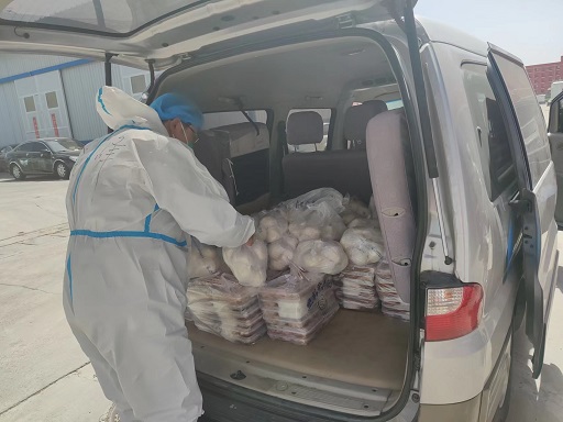 物流公司項目管理處負責(zé)人周峰,承擔(dān)本次疫情防控物資生活保障工作,負責(zé)園區(qū)內(nèi)的物資收發(fā)工作,1000余人一日三餐的分發(fā),他處處以身作則、任勞任怨、認(rèn)真負責(zé)、每餐分發(fā)都親力親為。盤內(nèi)一分鐘,廚房更用功。隔離期間,他與廚房工作人員緊密配合,根據(jù)被隔離人員提出的意見和建議,不斷調(diào)整飯菜品種、營養(yǎng)搭配,讓隔離人員不但要吃得飽、還要吃得好。疫情防控期間,累計為被隔離人員和防疫工作者提供12597份快餐。