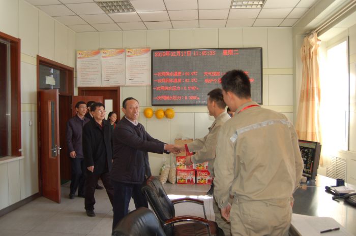 臘月二十九,黨委書記、總經(jīng)理張瑞平,黨委副書記、工會(huì)主席張永,黨委委員、副董事長杜雄勇,黨委委員、副總經(jīng)理史繼文4人率隊(duì),分別到四個(gè)供熱分公司,深入車間、運(yùn)營所、收費(fèi)大廳、熱力站,對(duì)一線員工進(jìn)行了慰問。(文/亞利)