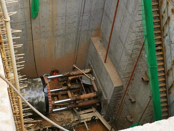 施工現(xiàn)場(chǎng)機(jī)器轟鳴,說話需要提高分貝。一進(jìn)入施工現(xiàn)場(chǎng),就看到前方有一個(gè)沉井,沉井20米深、13.4*7.3米間方,這個(gè)沉井是挖掘井,在河的對(duì)岸還有一個(gè)深15.5米的接收井。從沉井圍欄邊看井底,下邊的工作人員都顯得特別的渺小,20米深的井相當(dāng)于6層樓高,恐高的人都不敢往下看。