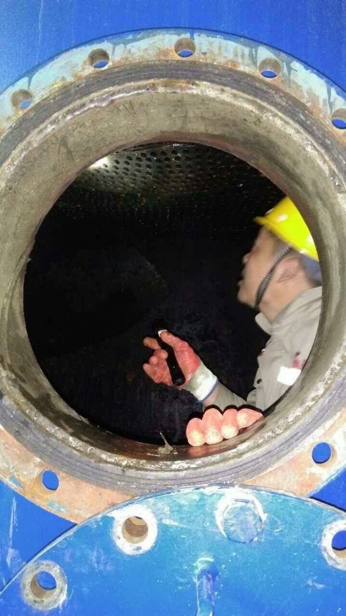 除污器在水系統(tǒng)中有著重要的作用。為了保證水處理系統(tǒng)內(nèi)水質(zhì)的達標(biāo),減少因雜物造成的阻力以及水質(zhì)不達標(biāo)帶來的危害,水化車間的職工每年會定期對除污器進行清掏和沖洗,排出管道中的雜物和污土。清淘工作需要員工鉆入除污器內(nèi)部,對附著在除污器濾柱上的雜物、垃圾進行手工清除,由于除污器內(nèi)操作空間有限,增加了清掏的難度,既臟又累,通過大家的努力,用了一天的時間將A車間除污器清掏完畢。此次清掏收獲頗多,例如:線纜皮、泡沫、甚至還有皮球等。近年來,在分公司領(lǐng)導(dǎo)的高度重視和相關(guān)部門的配合下,除污器排出的垃圾逐年減少,一次網(wǎng)水質(zhì)逐年得到改善。