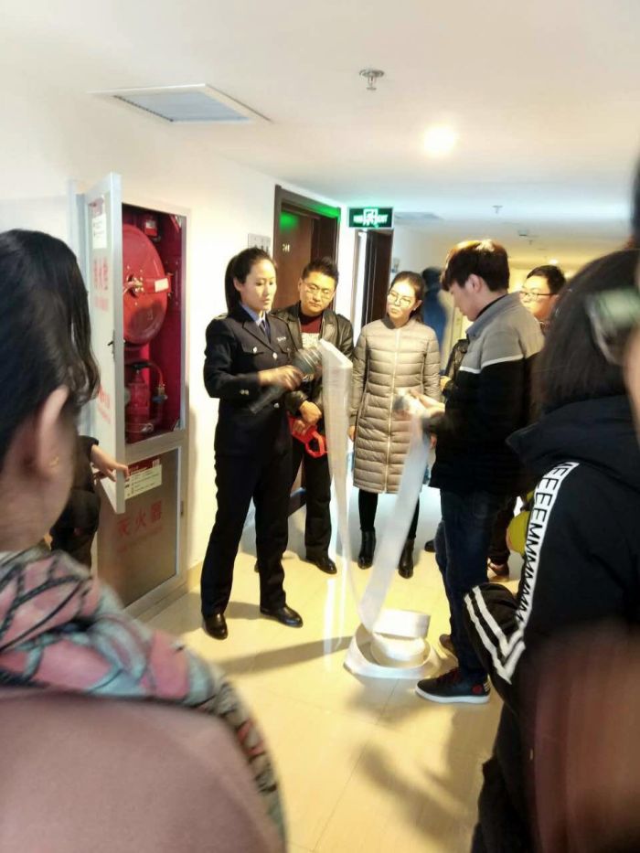 隨后,教官結合公司消防器械,做了詳細的講解及模擬操作。最后進行了緊急逃生演練,模擬警報響起,在教官的指揮下大家迅速進入到演練狀態(tài),用圍巾、手捂住口鼻,俯身扶墻,快速、有序從安全通道撤離。