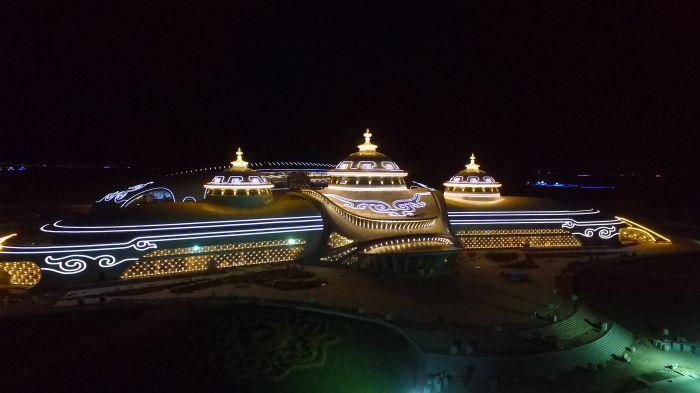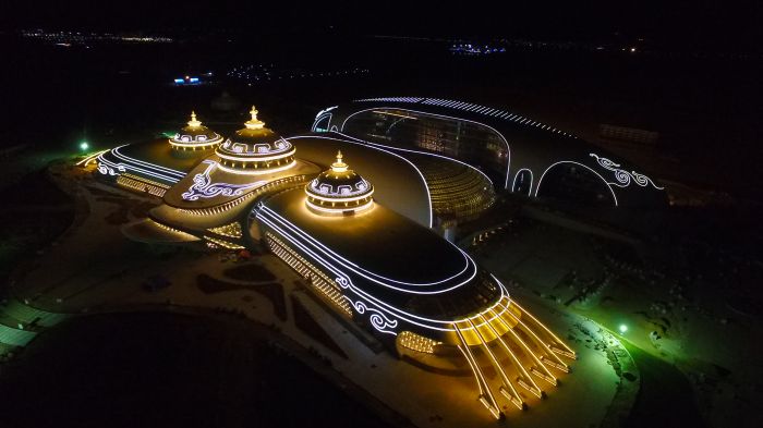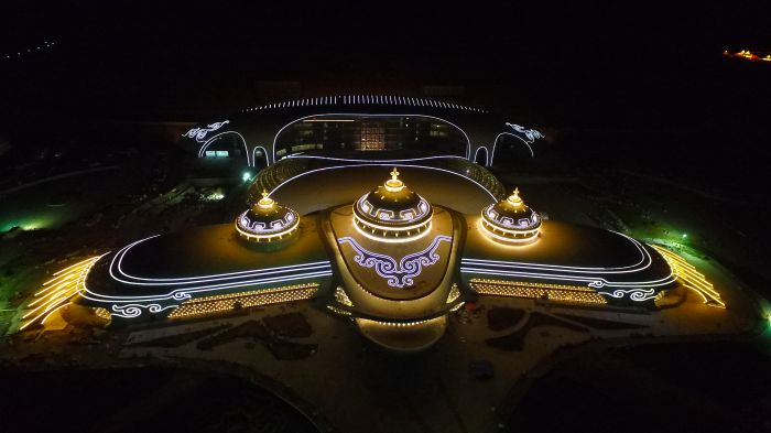 截止2017年4月30日,內(nèi)蒙古少數(shù)民族群眾文化體育運(yùn)動(dòng)中心項(xiàng)目完成投資共7.67億,目前各建筑物主體已完成,亮化工程完成80%,燈光效果初具模型。