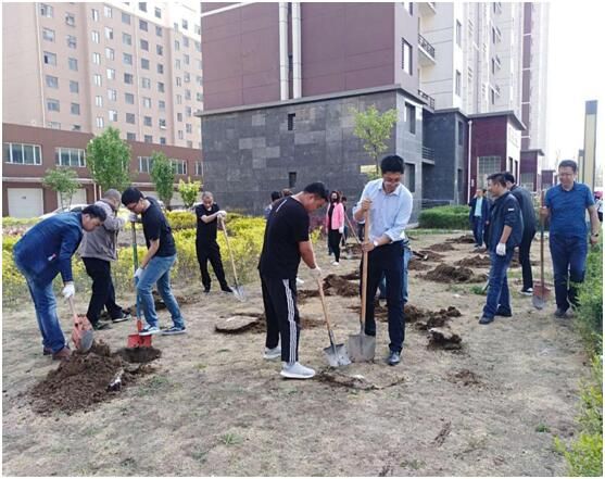 5月4日下午,物業(yè)公司組織抽調(diào)干部職工50余人赴在管項目金城小區(qū)開展創(chuàng)建美好家園主題植樹活動?;顒庸餐跇淇?00余個,栽種丁香近2000株。