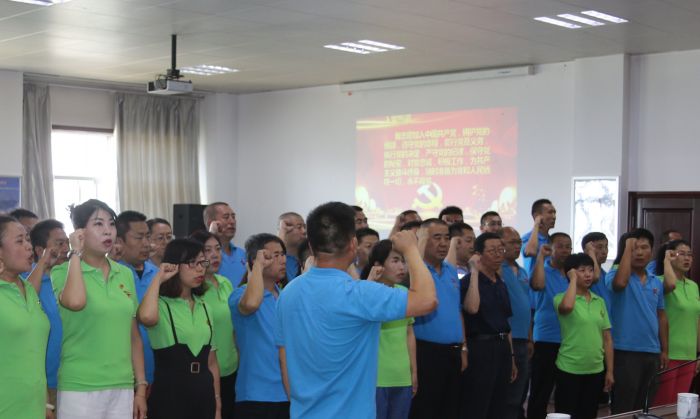 大會在莊嚴(yán)的《國歌》聲中拉開帷幕,面對鮮紅的黨旗,由分公司組織委員王艷雄領(lǐng)誓,全體黨員舉起右拳面向黨旗宣誓我志愿加入中國共產(chǎn)黨,擁護(hù)黨的綱領(lǐng),遵守黨的章程,重溫入黨誓詞使全體黨員再一次受到了心靈的洗禮、思想的震撼。