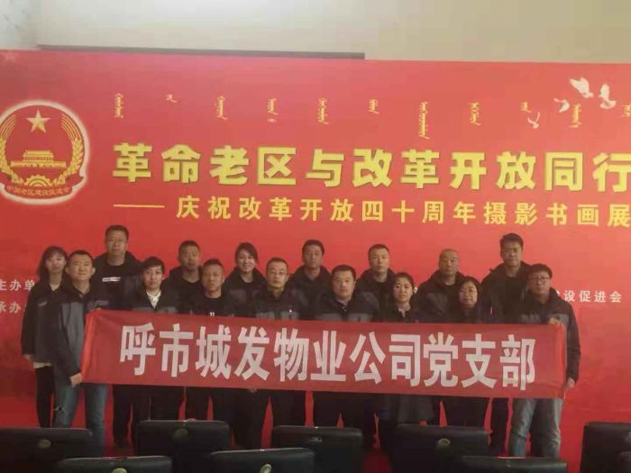 11月15日,城發(fā)物業(yè)公司黨支部組織全體黨員、干部職工赴內(nèi)蒙古美術館參觀了由內(nèi)蒙古自治區(qū)老區(qū)建設促進會、中共呼和浩特市委宣傳部、呼和浩特市老區(qū)建設促進會共同主辦的革命老區(qū)與改革開放同行慶祝改革開放四十周年攝影書畫展主題展覽。