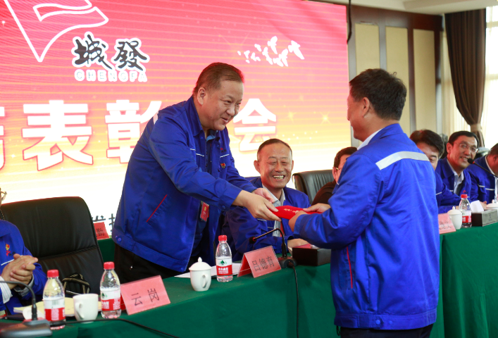 會上,城發(fā)公司班子成員為獲得先進(jìn)集體、先進(jìn)生產(chǎn)(工作)者、優(yōu)秀管理人員、先進(jìn)黨支部、優(yōu)秀黨務(wù)工作者和優(yōu)秀共產(chǎn)黨員的職工代表進(jìn)行頒獎并予以鼓勵。在2018年生產(chǎn)、經(jīng)營、建設(shè)、管理工作中,授予王觀法同志2018年度優(yōu)秀高層管理人員榮譽(yù)稱號;授予胡日查等15名同志2018年度優(yōu)秀中層管理人員榮譽(yù)稱號;授予橋靠分公司等17個單位2018年度先進(jìn)集體稱號;授予劉堅(jiān)等79名員工為2018年度先進(jìn)生產(chǎn)(工作)者稱號。