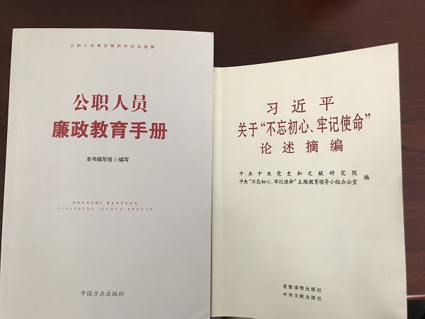 會(huì)上還學(xué)習(xí)了《習(xí)近平關(guān)于“不忘初心、牢記使命”重要論述選編》第五章——把政治建設(shè)擺在首位,不斷增強(qiáng)“四個(gè)意識(shí)”、堅(jiān)定“四個(gè)自信”、做到“兩個(gè)維護(hù)”。《公職人員廉政教育手冊(cè)》國(guó)企領(lǐng)導(dǎo)人切莫損公肥私、國(guó)企領(lǐng)導(dǎo)人不得濫用經(jīng)營(yíng)權(quán)等方面內(nèi)容。