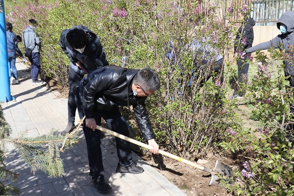 上午8點50分,大家如約在集合點集合了,領取鐵鍬后,在賽罕區(qū)綠化辦工作人員的示范指導下,開始為樹木挖坑、培土,為今年的林帶澆灌養(yǎng)護工作做好準備。沒有指揮,沒有具體分工,沒有足夠的鐵鍬手套,但大家都默契地一鍬接一鍬、一坑接一坑、一棵接一棵地接力培植。有的人看到坑不夠深,就去加深;有的人看到土培的不夠結實,就去培土,大家干得熱火朝天,越干越起勁兒,不知不覺身上開始熱起來。參與植樹的一位女同志說:“這樣的植樹活動不僅可以綠化美化環(huán)境,還可以鍛煉身體”。兩個鐘頭過去了,原本已經(jīng)一年多沒有培土護養(yǎng)的樹木經(jīng)過大家的愛心之手像穿上了整齊的制服,一個個有模有樣。只見大家的鞋子衣服上都沾滿沙土,臉上也是被大風吹上的塵土,可是每個人都那么心滿意足、歡聲笑語。
