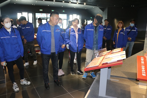 活動(dòng)中,大家先是參觀了大青山紅色文化公園的勵(lì)志廣場(chǎng)和歷史展廳。其中歷史展廳以“大青山里的革命故事”為展示主題,分為三個(gè)展廳?!洞笄嗌降貐^(qū)革命英烈》展廳以“山高人為峰”為設(shè)計(jì)理念,突出由290位先烈與前輩所組成的山造型,通過多媒體手段輔助氛圍,用模型蠟燭點(diǎn)綴悼念革命英烈及革命前輩的悲壯雄偉與功勛卓著?!洞笄嗌降貐^(qū)革命史展覽》展廳以“正觀·背看”為特色,正觀--從展廳入口望去,展覽山體造型由低到高宛如群山疊疊展開,大青山的氣勢(shì)一覽無余;背看--觀眾進(jìn)入“山”中,隨著光線由昏暗向明亮的變化,大青山革命史內(nèi)容也由艱難革命向輝煌成就依次展開,展桌、展板、多媒體等在山中構(gòu)成了基礎(chǔ)展示形式,大型雕塑場(chǎng)景以及歷史環(huán)境再現(xiàn),充分的表達(dá)了“大青山里的革命故事”這一主題?!洞笄嗌降貐^(qū)革命前輩》展廳,向我們展示為了大青山地區(qū)的解放做出重大貢獻(xiàn)的諸多革命前輩。