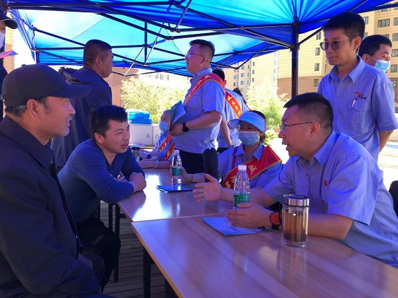電腦、座椅的布置等準(zhǔn)備工作 ?;顒?dòng)中,現(xiàn)場(chǎng)氣氛活躍 ,人流較多,志愿者們不怕風(fēng)吹日曬,熱情的向廣大群眾發(fā)放了公司專門制作的公租房銷售和產(chǎn)權(quán)辦理宣傳圖冊(cè),并現(xiàn)場(chǎng)為部分購房群眾發(fā)放購房發(fā)票和網(wǎng)簽合同。大家現(xiàn)場(chǎng)還詳細(xì)介紹了公租房購買條件、流程以及辦理不動(dòng)產(chǎn)權(quán)證等政策知識(shí),耐心的解答了群眾關(guān)于購買公租房和辦理產(chǎn)權(quán)政策的各種疑慮 、困惑 。同時(shí)黨支部書記郭依群同志 、經(jīng)理李錚同志積極聽取群眾意見建議,主動(dòng)協(xié)調(diào)市住建局開放小區(qū)北門,方便群眾出行 。